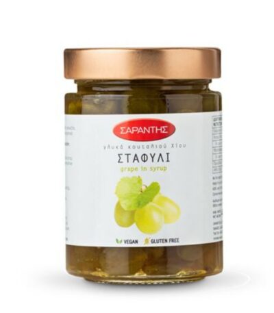 These unique sweets have been a mainstay of Greek, Turkish, Balkan and Russian culture for centuries – offered to visiting guests as a sign of warmth and hospitality. Traditionally served in a generous teaspoon, spoon sweets are meant to be savored between sips of water, and sometimes coffee. Or to be enjoyed as an elegant centerpiece on a small dish of Greek yogurt. Saradis, has been making spoon sweets on the beautiful Greek Island of Chios since 1928. Our Grape Sweets feature plump hand-picked grapes suspended in a thick, naturally grape-flavored sugar syrup. Succulent and chewy, more like raisins after marinating, Saradis Grape Sweets are first meant to be enjoyed in a teaspoon. Less sweet, and with more authentic flavor than traditional jam or preserves, our luscious Grape Sweets are delicious with peanut or almond butter. Swirl them into a bowl of creamy tahini (sesame paste) and dip pieces of crusty bread or toast into the mixture, for a healthier version of a PB&J! Serve a spoonful of our grape sweets with your morning oatmeal or porridge. Or use them in a glaze for roasted chicken or ham. You will find spoon sweets (Glyka tou Koutaliou, in Greek) in almost every household in Greece.