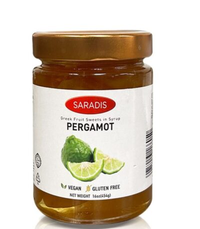 A mainstay of Greek, Turkish, Balkan and Russian culture for centuries, spoon sweets are traditionally offered to visitors as a sign of hospitality: served in a generous teaspoon with a glass of water, and sometimes coffee. Or presented as an elegant spoonful in center of small dish of Greek yogurt. Saradis has been making spoon sweets on the beautiful Greek Island of Chios since 1928. Our Pergamot Peel Sweets feature large peels of ripe, hand-picked pergamots (“bergamots” in English) suspended in a delectable syrup. Thought to be a hybrid of lemon and a bitter orange, these fragrant peels are also used to flavor Earl Grey Tea. More syrupy than classic marmalade, Saradis Bergamot Peel Sweets are chewy and juicy – the “perfect bite” in a teaspoon. Chewy, firm and not too sweet (despite the name!) our Pergamot Peel Sweets are wonderful chilled, right out of the jar. Slice the peels and serve with their syrup on French toast, pancakes or waffles, with a dollop of Greek yogurt, mascarpone or whipped ricotta, for a delightful citrusy spin on a brunch classic. A wonderful accompaniment to scones, biscuits and cornbread, the peels can also be sliced and served with their syrup as a condiment with a cheese and salami Meze platter. They are also delicious over ice cream or tangy frozen yogurt